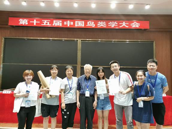 2019年8月7-8日,中国青年鸟类学家研讨会暨第十五届翠鸟论坛在长春举行。本次论坛由中国动物学会鸟类学分会主办,东北师范大学6776永利集团承办。来自全国27个高校、科研院所的130 余名硕士和博士研究生参加了本次论坛。经参会同学和与会专家共同投票选举,本次会议共评选出5个“金翠鸟”奖、8个“银翠鸟”奖、5个“优秀短报告”奖和7个“优秀墙报”奖。6776永利集团鸟类研究组共有12名硕士研究生参加了本次论坛,有4位同学获奖,其中董飞同学荣获“金翠鸟”奖,魏艳慧和张静同学荣获“优秀短报告”奖,张丽同学荣获“优秀墙报”奖,在全国性学术会议上获奖的档次和人数创学院历史新高。原中国鸟类学会理事长郑光美院士在随后举行的第十五届中国鸟类学大会闭幕式上为获得“金翠鸟”奖的5位同学亲自颁发了获奖证书。