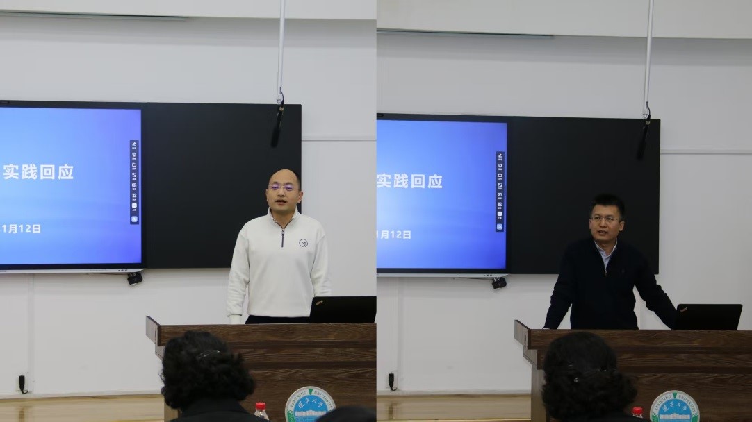 胡风庆代表学院师生,表达了贯彻落实学校“三走”办学理念和教育科技人才一体化办学实践的决心,动员师生坚守服务地方振兴的初心,以《实践笔记》为工作抓手,主动深入行业产业一线,把真实问题贯穿教学科研全过程,在深化校企合作、推进协同创新、培育优质成果上展现新作为。