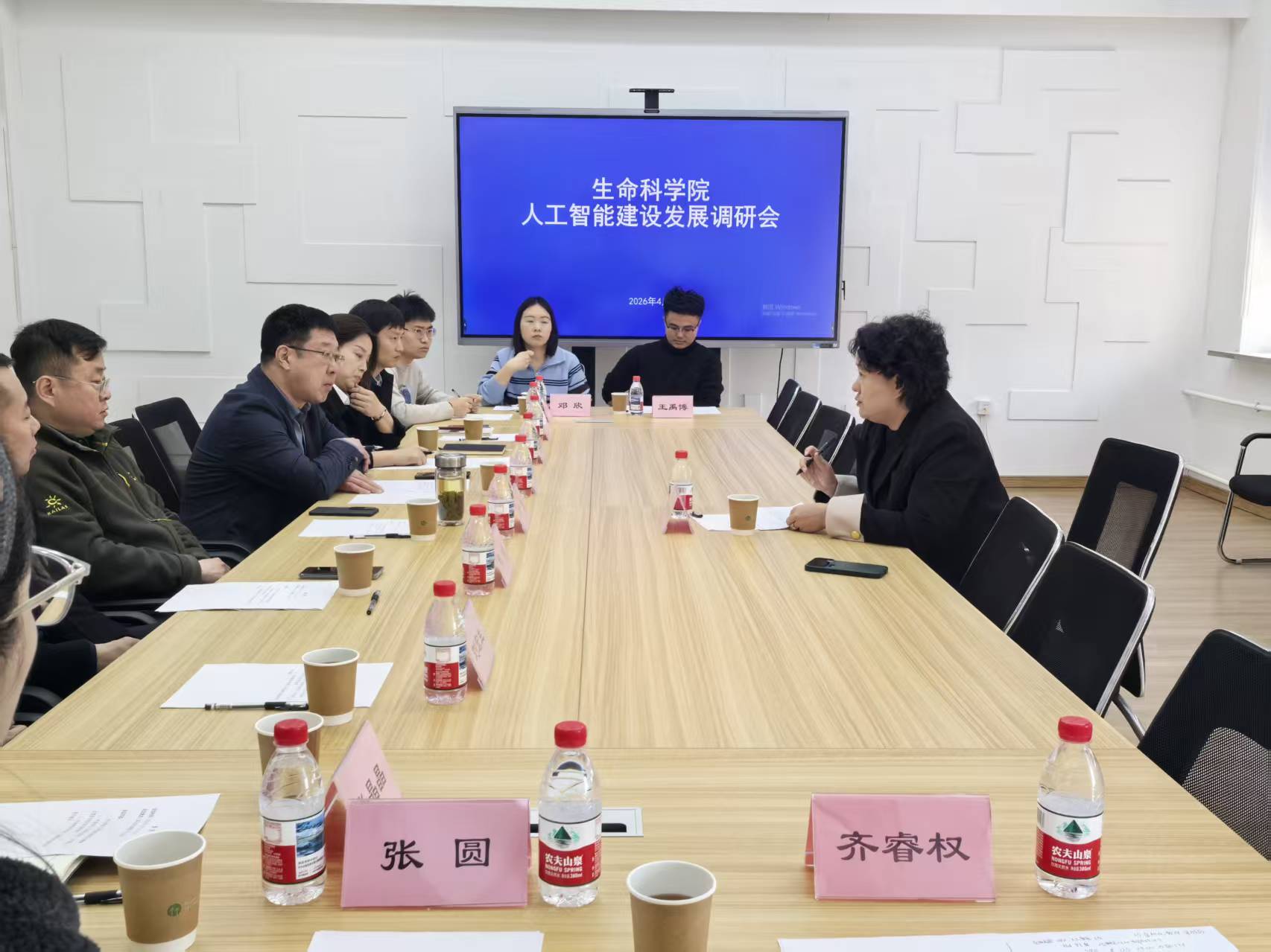 会上,李宇鹏首先传达学校人工智能建设推进会会议精神,细致听取学院人工智能发展现状、工作思路,以及对学校人工智能建设的意见建议。她强调,人工智能是引领高校高质量发展的战略性技术,学院要立足生物学科特色,主动对接国家重大战略,找准学科与人工智能的融合切入点,将人工智能理念贯穿学科建设、人才培养、科研创新全过程,走特色化人工智能发展道路。