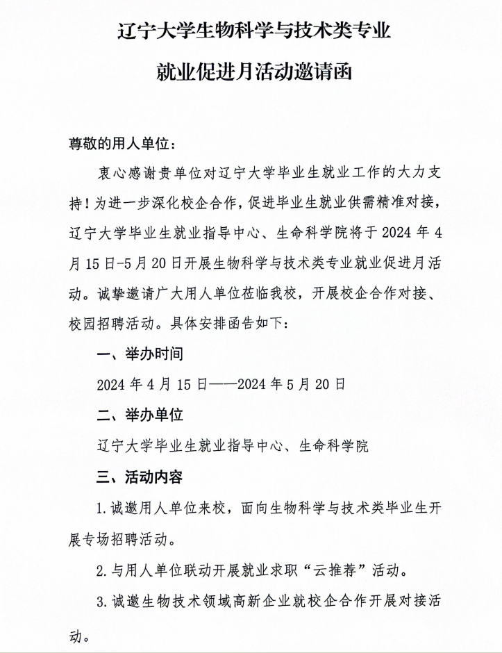 永利官网生物科学与技术类专业 就业促进月活动邀请函