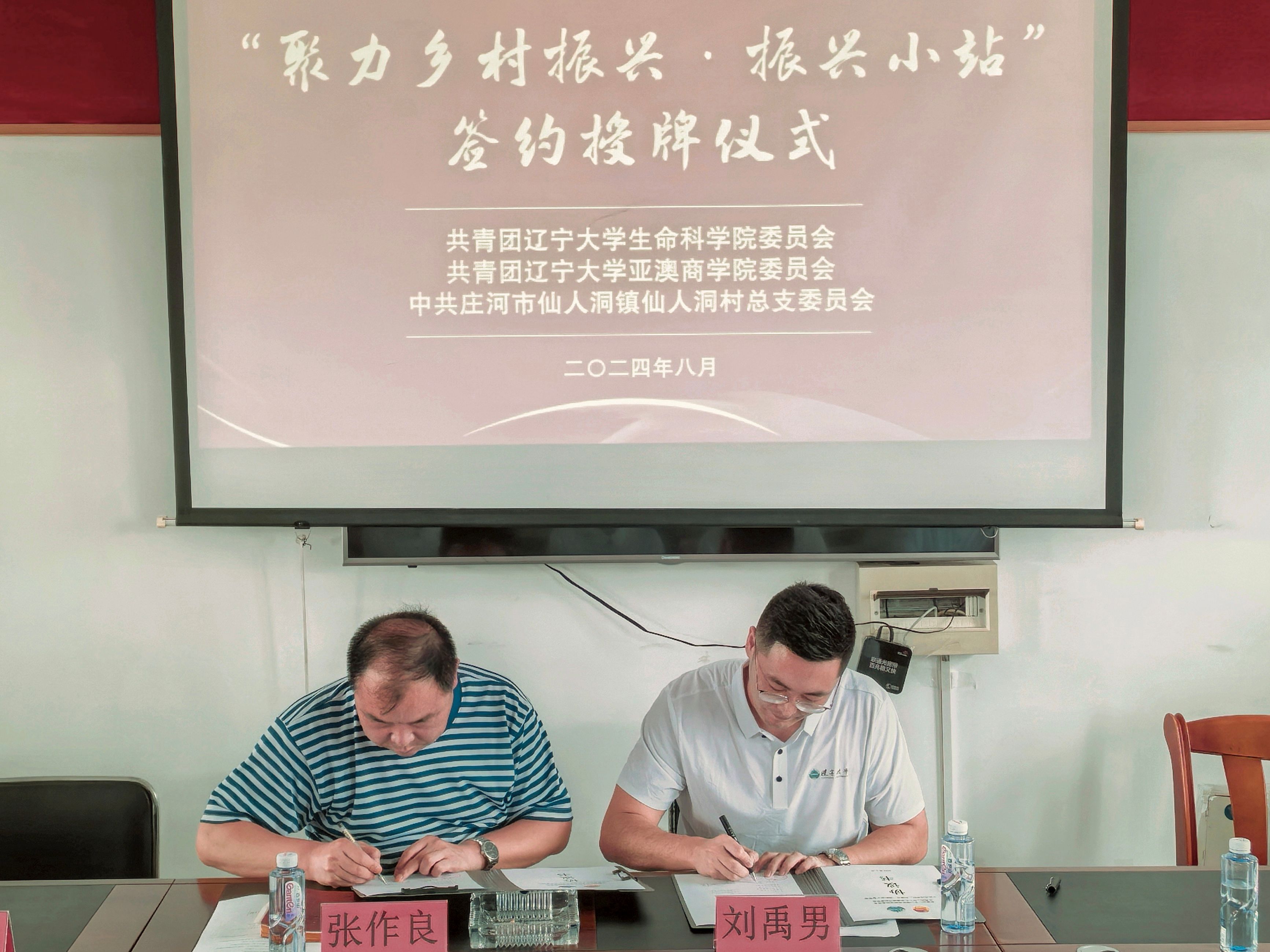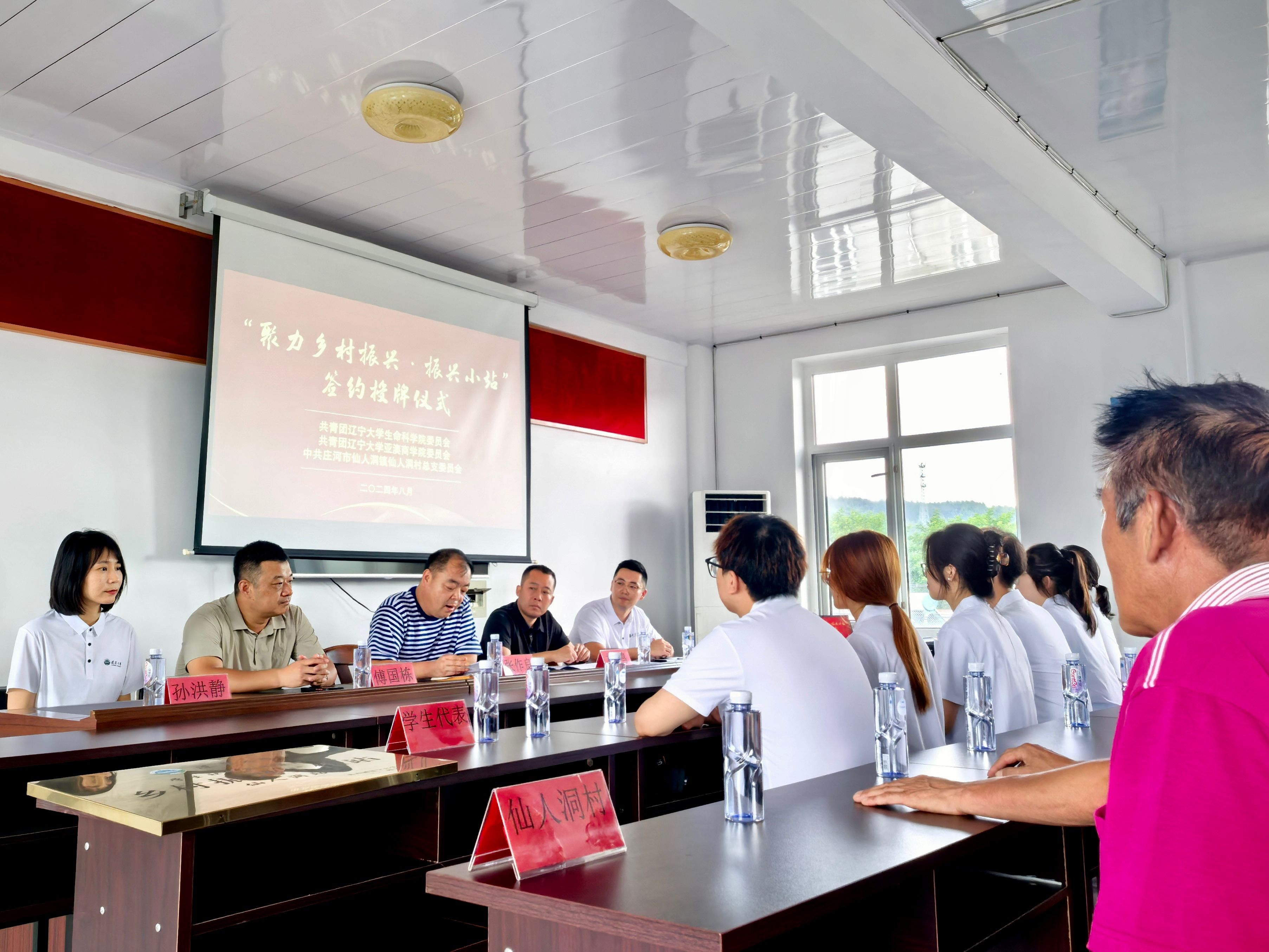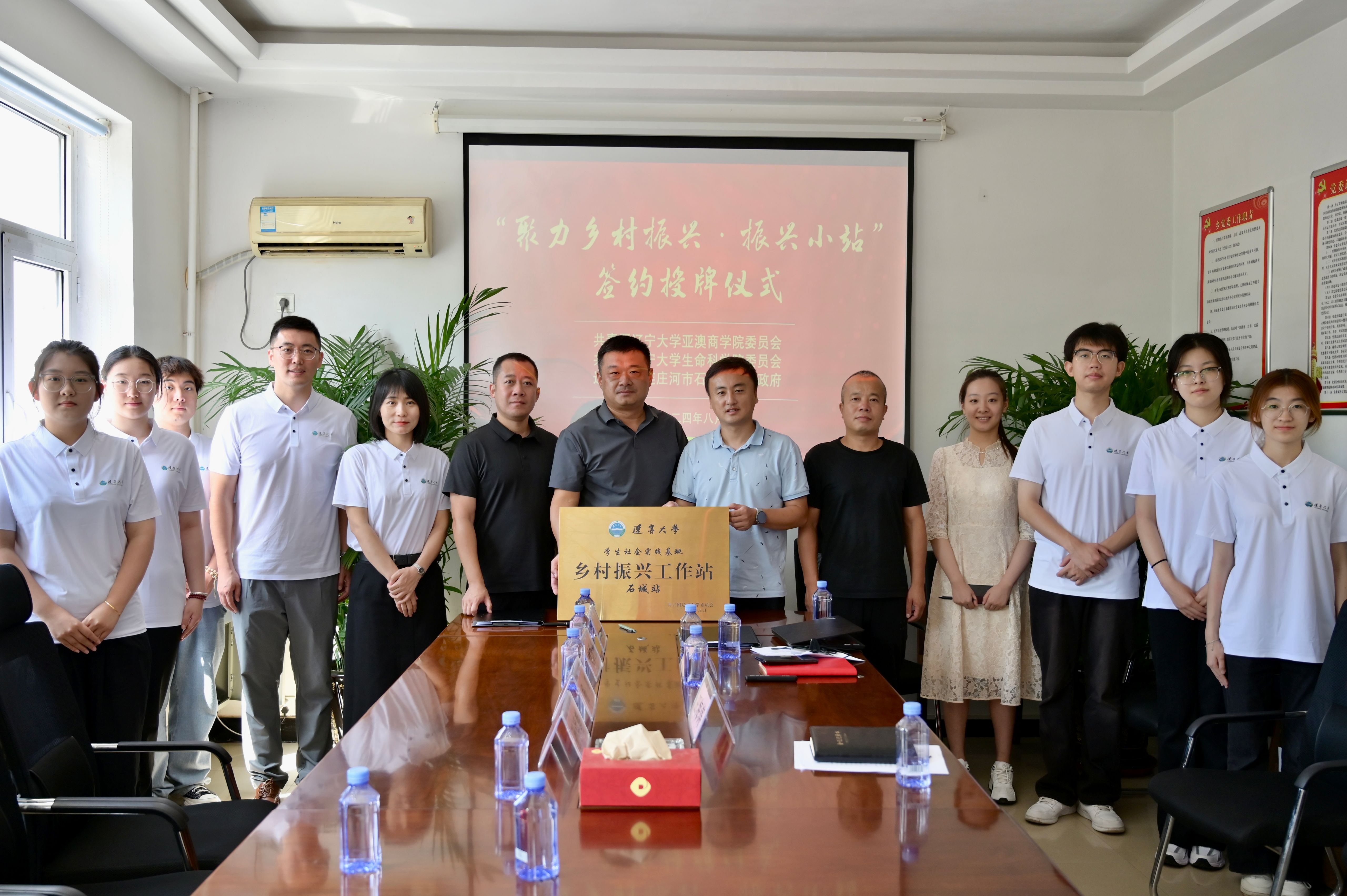 8月23日,我校师生一行来到大连庄河石城乡,与石城乡党委副书记、乡长金圣,石城乡党委副书记田海涛等展开会谈,并完成了框架协议的签署和授牌仪式。