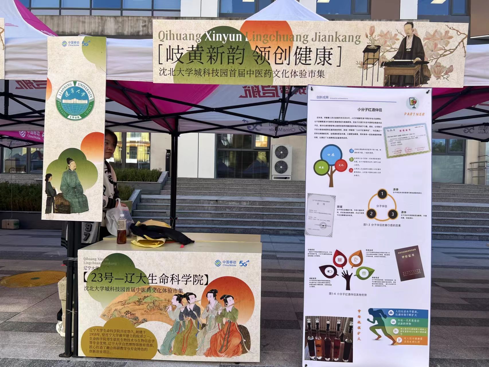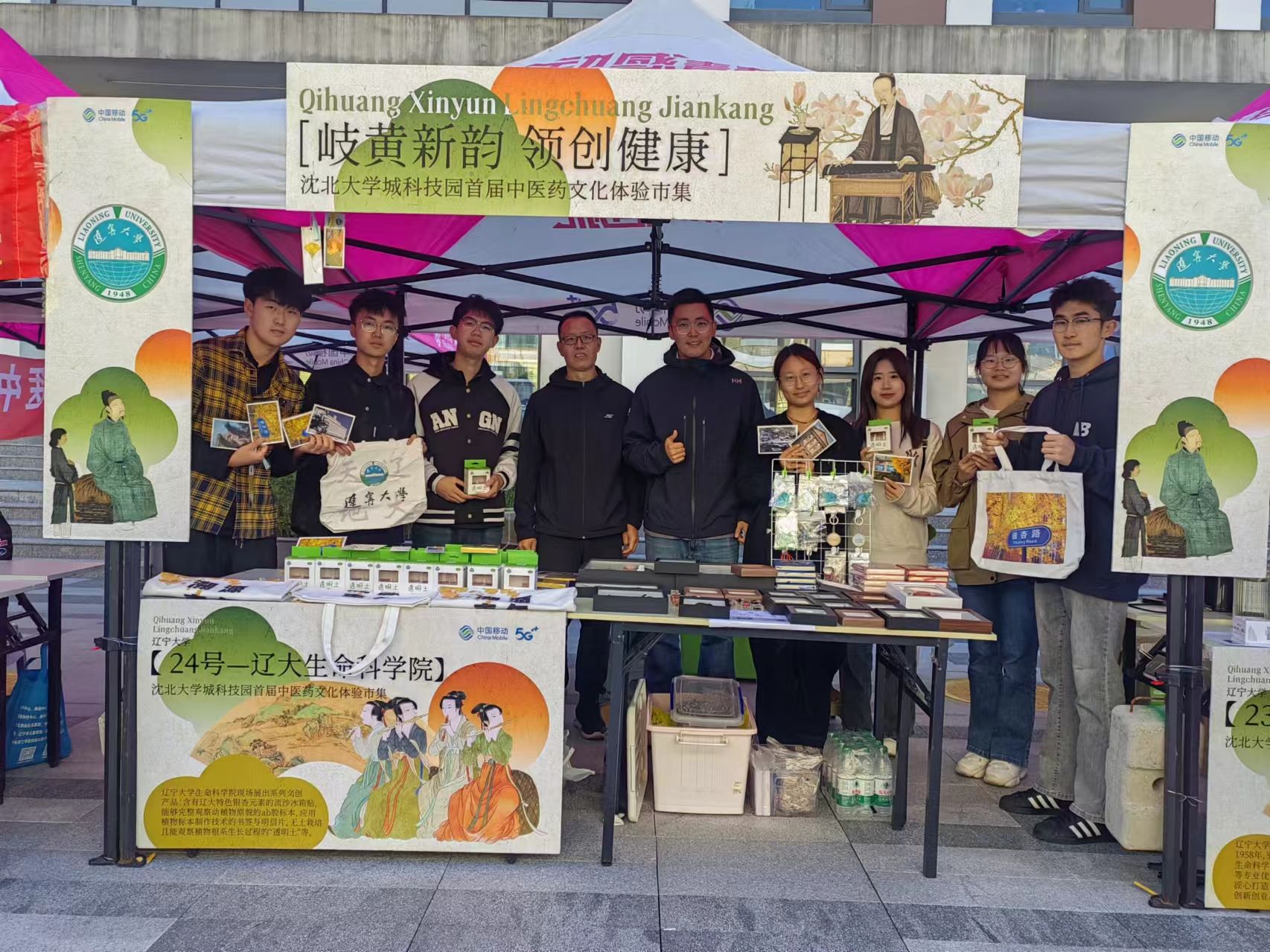 2024年10月10日,6776永利集团参加沈北大学城科技园首届中医药文化市集活动,布置了2个具有辽大特色的文创和科研成果展台,受到广泛关注和好评。