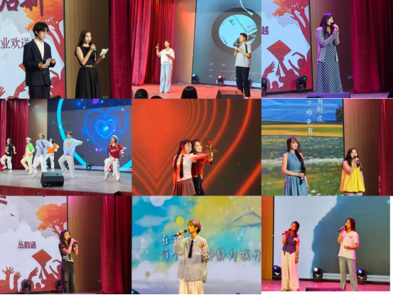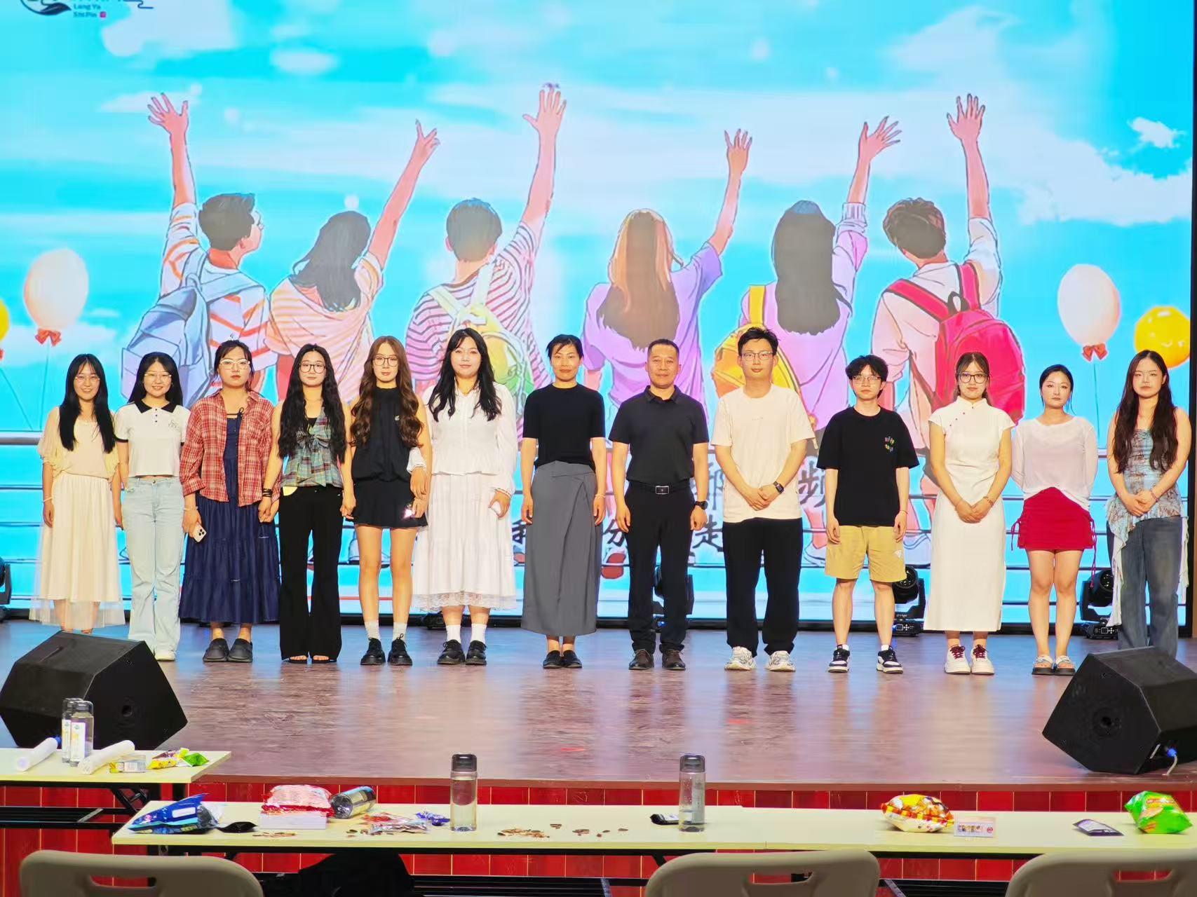 整场晚会以十三个涵盖舞蹈、歌唱等多元形式的节目为载体,将“闹钟提问”“数字炸弹”等互动游戏穿插其间,师生踊跃参与,现场欢声笑语不断。其中2023级班委合唱的《凤凰花开的路口》将晚会的氛围推向高潮,这饱含深情的歌声,既是对大学时光的深情回眸与郑重告别,更是对即将开启的人生新征程的热烈礼赞。最后,杨鸣和邢爽两位老师依次致辞,深情表示,“无论未来走向学术科研、职场拼搏还是远方探索,母校永远是你们的港湾,欢迎常回家看看!”