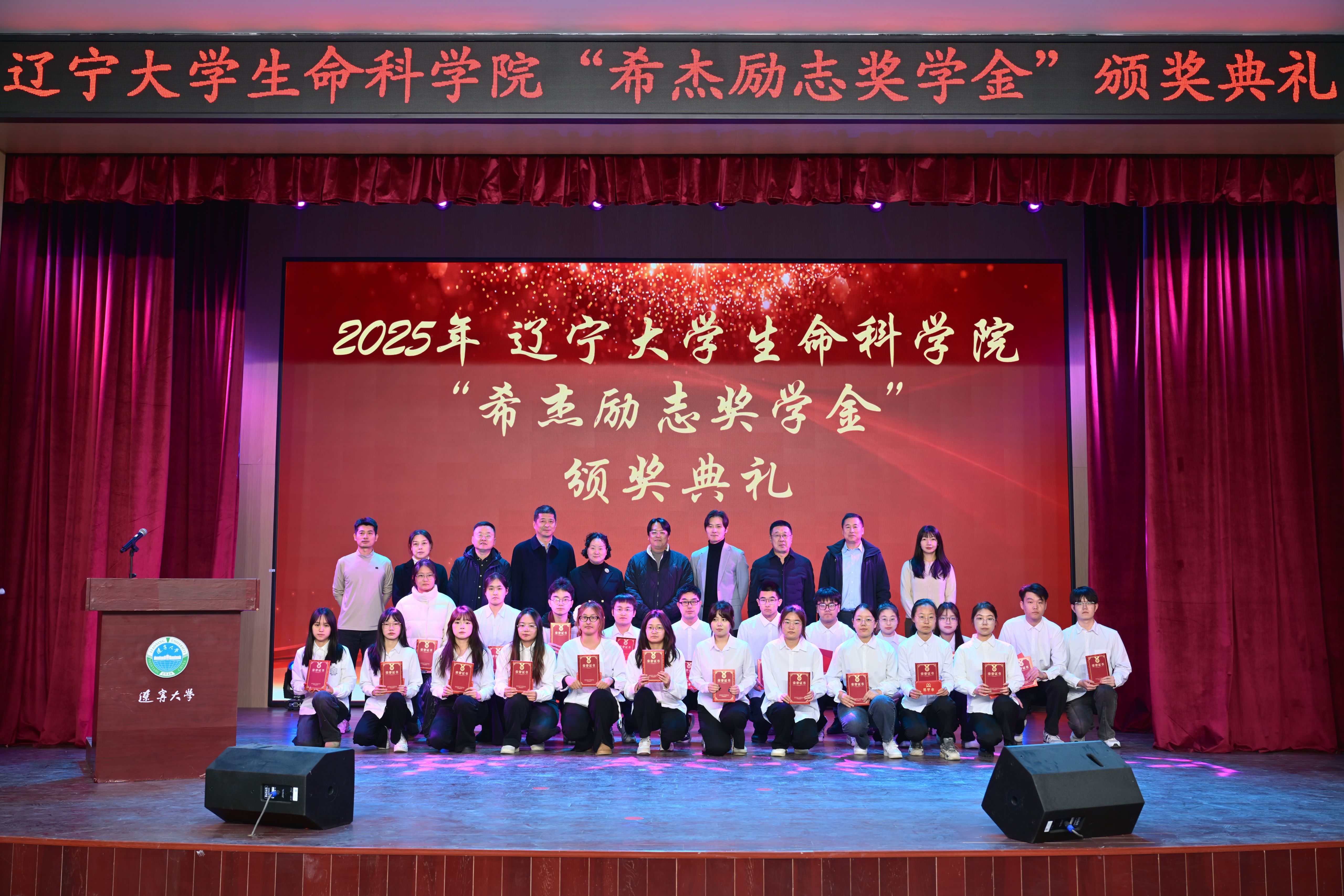 典礼尾声,全体人员合影留念。此次典礼不仅表彰了优秀学子,更夯实了校企合作基础,为科研协同、人才共育等领域的深度合作注入动能。愿同学们以获奖学子为榜样,在生命科学领域追求卓越;也期待获奖同学珍惜荣誉、砥砺前行,书写精彩人生。