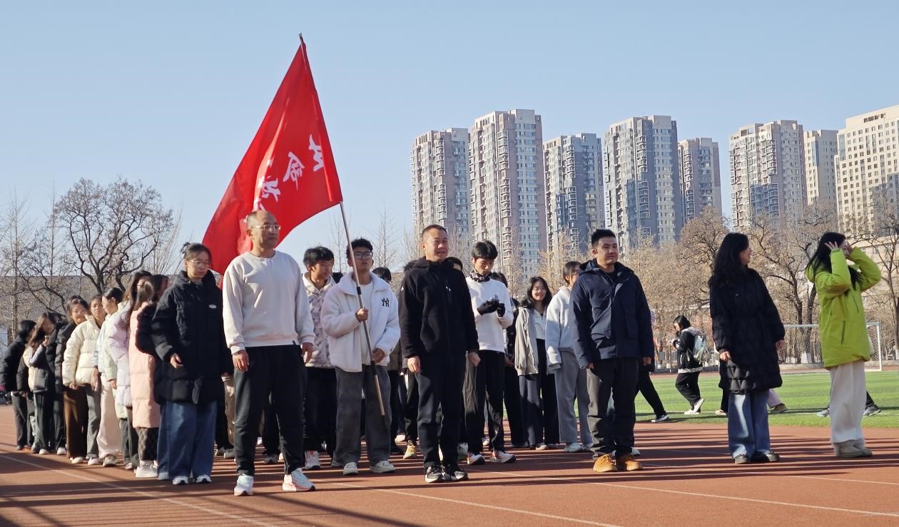 奔跑中,学生们一马当先、挥舞院旗,稳步前行、永不掉队。每一个脚印都印刻着对生命的热忱,每一次摆臂都挥洒着青春的汗水。青春的身影在阳光下跃动,宛如深秋的银杏叶,在校园中舞出激情与热血的旋律。