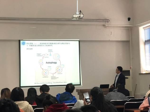 吴佳桢博士后进行了主题为《天然药物化合物通过调节自噬过程参与α-突触核蛋白清除的分子机制及相关靶向给药系统的研究》的学术报告。其主要研究方向为神经退行性疾病的分子机制和纳米材料载药治疗,近年来以第一作者发表了SCI论文1区TOP文章1篇。α-突触核蛋白是一种脑内含量丰富的神经蛋白,既参与正常突触功能的维持,又与各种神经退行性疾病有关。吴佳桢博士后通过研究发现二氢杨梅素和丹酚酸B能够在体内外均抑制α-突触核蛋白聚集体的形成,增强溶酶体膜上相关蛋白与α-突触核蛋白的共定位水平,从而促进α-突触核蛋白的自噬降解,同时减轻细胞毒性和神经炎症效应。