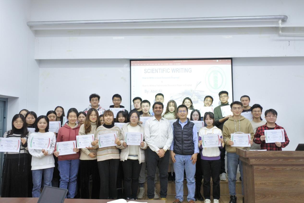 报告结束后,参会师生结合自己的课题研究和论文撰写过程中遇到的问题,与阿比德.阿里副教授进行了深入探讨,纷纷表示本次讲座受益颇多,同时也在阿比德.阿里副教授身上感受到了巴基斯坦人民对我国的深切情谊,让人钦佩并从中深受鼓舞。会后,李东来副教授和阿比德.阿里副教授共同为学员颁发了结业证书。